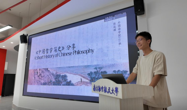 随后,在学院的阅读品牌“语”你共读环节,两位大一同学分别上台对近期所读书籍进行双语分享交流。徐以中在阅读交流后对两位同学的英语发音、分享内容、体会感悟等方面都进行了点评和指导。