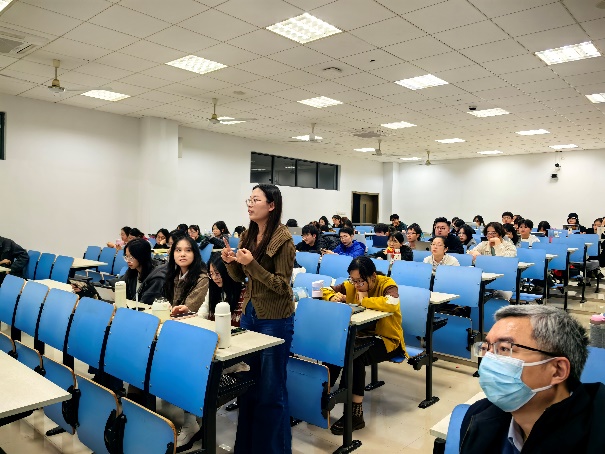 最后,王美姝聚焦当下,针对信息技术最新发展、机器学习等话题,与同学们展开了深入探讨。她认为,在信息技术辅助阅读中,同学应注意辨别信息来源的可信度和内容的质量,培养自己独立思考和分析能力,并科学安排时间,将信息技术用作辅助英语学习的工具,形成良好的英语学习习惯。