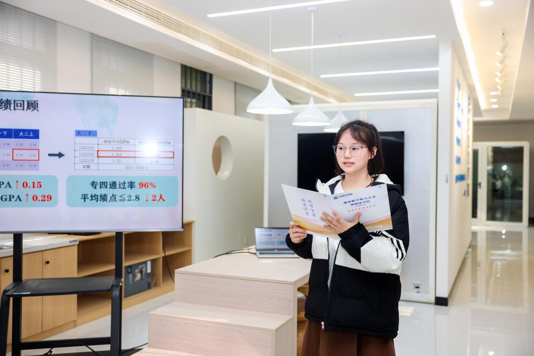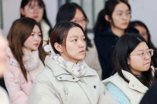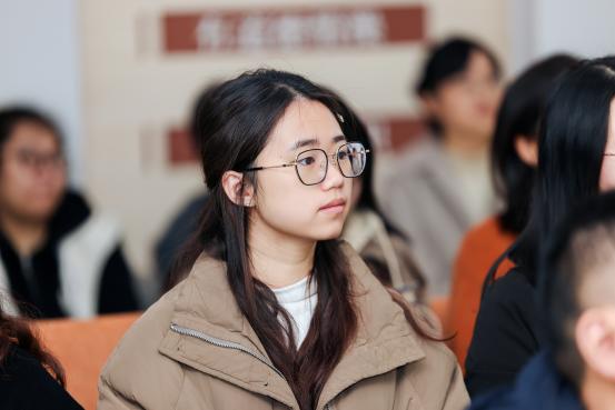 学院“学业攀登计划”学生代表,2023级本科生余可可与朋辈导师陈欣怡进行了攀登计划经验分享,讲述两人在过去一年中,加入学院的学业攀登计划,在学业上相互帮助,在情感上相互鼓励,共同成长进步,结下深厚友谊的故事。学院“学海同舟计划”班级代表,1222102班学习委员汪昕进行了班级学风建设经验分享。她带领班级通过日常学习打卡与系列学风建设活动,不断提高专业知识水平,增强班级凝聚力。班级成绩稳步上升,形成了积极向上的学习氛围,获评“学海同舟标兵班级”与校“标兵班级”荣誉称号。
