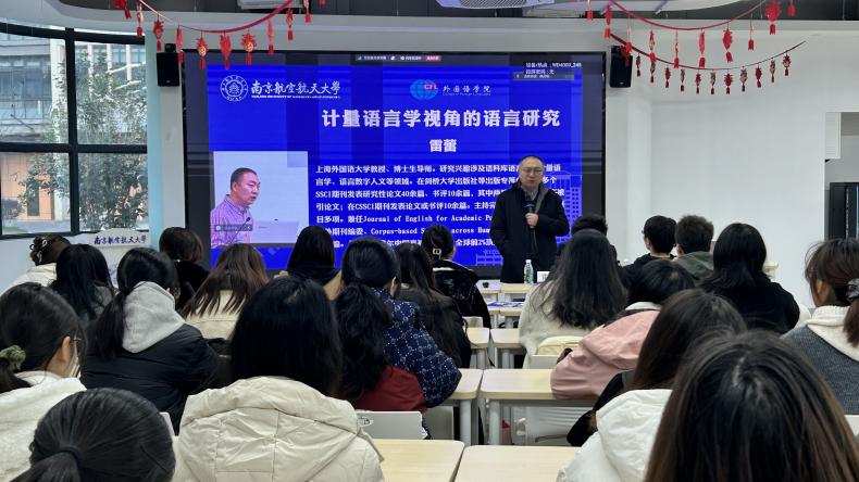 12月20日,必威西汉姆联 “计量语言学视角的语言研究”讲座在天目湖校区“一站式”学生社区顺利举行,本次讲座邀请到上海外国语大学语料库研究院教授雷蕾主讲。必威西汉姆联日语系副主任钟勇、本科生辅导员姚灵珑及大一年级学生参加了本次讲座。