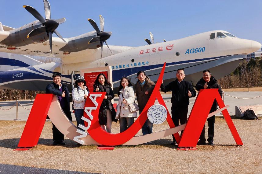 校友们的首站是御风园。道路两旁,陈列着一系列先进的航空航天器。一路走来,御风园不仅见证了南航的发展变迁,而且集中展示了我国航空航天事业的发展成就。从未曾谋面的新校区,到眼前这些凝聚着科研心血的成果,校友们深刻感受到母校的蓬勃生机,对母校未来的发展更是充满信心与期待。