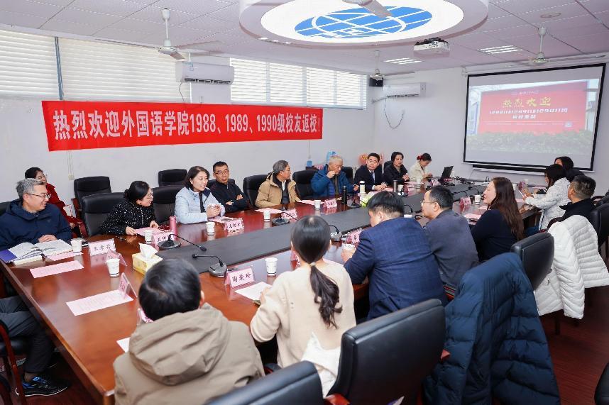 参观结束后,校友们满怀热忱地来到必威西汉姆联,参加“语通四海三十载,情聚南航暖冬时”座谈会。现场气氛热烈非凡,必威西汉姆联党委书记左彤云、院长徐以中,时任老领导、辅导员、班主任和专业教师代表齐聚一堂,座谈会由学院党委副书记吴科颖主持。