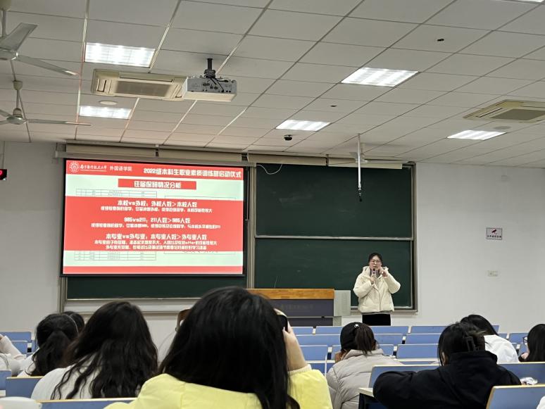 接着,朱芸对继续深造和直接就业两个主要的发展路径进行了全面解读。在继续深造方面,涵盖保研、考研、留学三个方向;在直接就业方面,朱芸为同学们分享了实习与求职的多元渠道,提醒同学们注意甄别,同时介绍了学院提供的各类就业帮扶举措,包括访企拓岗、简历修改、模拟面试等,鼓励同学们积极参加,提前做好求职准备。
