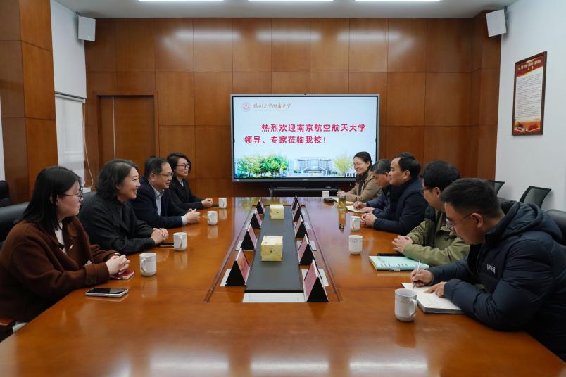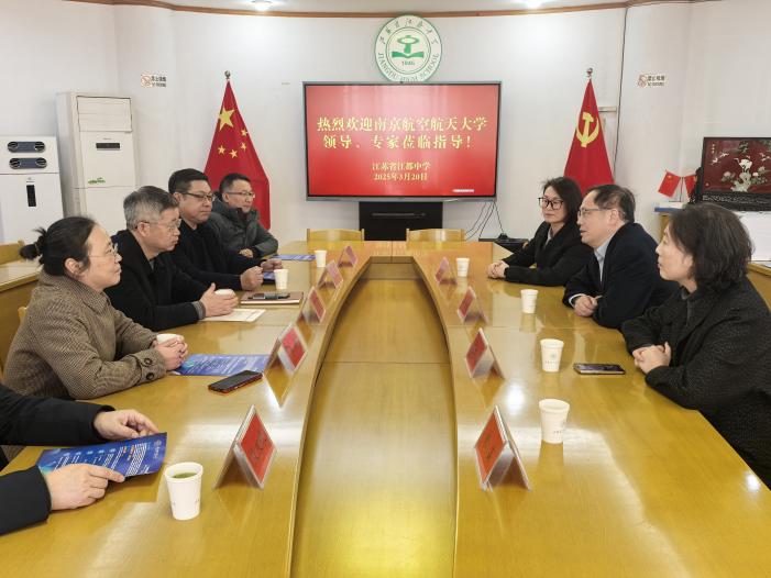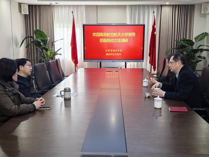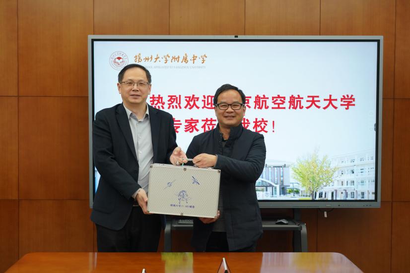 随后,招生组前往扬州大学附属中学,扬大附中校长卢廷顺、副校长吴梦雷、翟元国等校领导班子成员热情接待。双方围绕线上线下融合课程体系建设、航空航天特色校本课程开发等“双高”衔接关键领域开展深入探讨。左彤云向扬大附中发出诚挚邀请,欢迎优秀学子来南航参加校园开放日活动。张启钱代表南航向扬大附中赠送嫦娥六号模型,期待通过“双高”特色资源联动,为中学生搭建航天科普实践平台。