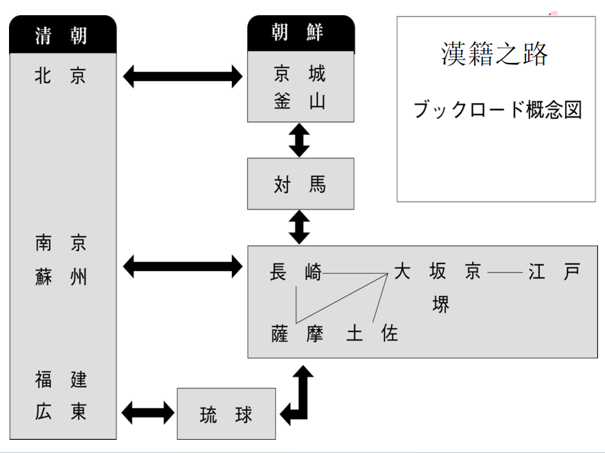 基于长期的研究,远藤教授提出了独创的“汉籍之路(ブックロード,Book Road)”学说,并绘制了汉籍之路概念图谱。