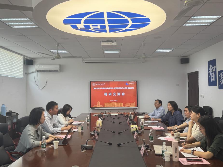 5月13日,北京交通大学语言与传播学院党委书记孙文博一行来我院调研交流,我院党委书记左彤云、院长徐以中、副院长姜礼福、副院长徐智鑫及系部相关负责人出席并参与研讨。