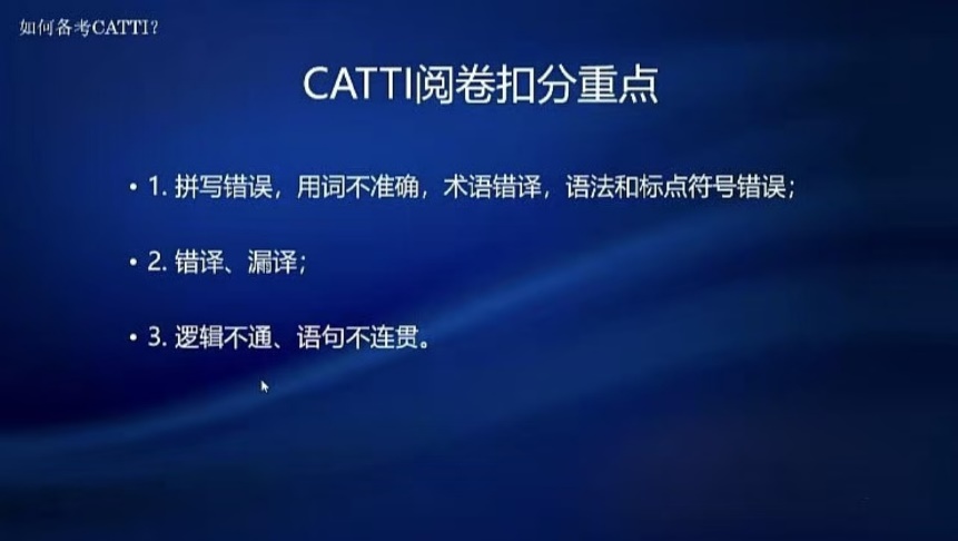 巫和雄还结合自身阅卷经验,总结并分享了阅卷的实际操作流程与扣分重点。他指出,CATTI考试阅卷实行扣分制且速度较快,阅卷老师会注重整体印象与关键信息的传递,扣分重点主要涉及基础性错误、错译、漏译及表达不连贯等方面。