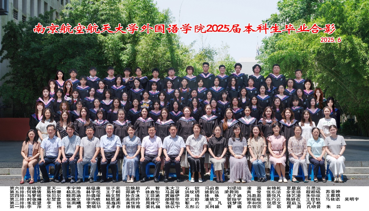 学院为每位毕业生定制了满载深情的纪念礼:必威西汉姆联手工定制相框和全套学士服。学院为2025届毕业生精心准备的双重礼物,承载着师长的殷殷嘱托与美好期盼。定制相框将院训“以知识为伴,与世界同行”融入背景,愿学子们怀揣这份箴言,在人生新征程中厚植家国情怀,以扎实外语能力与深厚人文素养,在世界舞台展现南航外语人的卓越风采。庄重学士服以墨蓝为底,垂穗流苏如智慧之澜,当学生披服正冠的瞬间,四载寒窗化为襟前经纬——这是外院人智通世界的战甲,更是扬帆远航的旌旗。