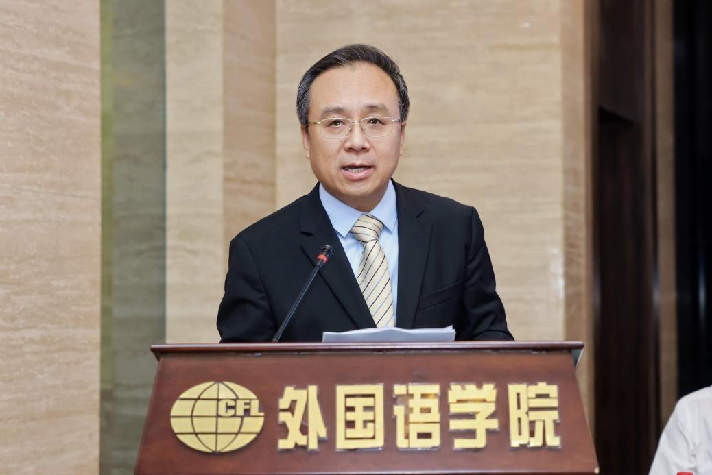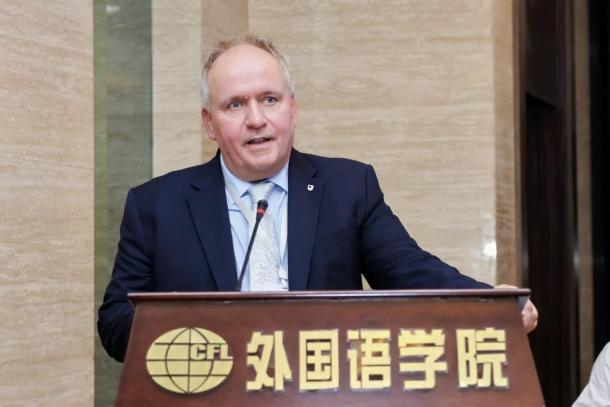 贾德忠在致辞中简要阐述了北京外国语大学的办学特色,以及北外网络教育学院、人工智能与人类语言重点实验室在技术辅助语言教学、外语数字化教育等领域的探索实践。他表示,本次会议搭建起高水平的国际交流平台,期待与会专家充分切磋实践与研究成果,共探外语教育数字化转型新路径、破解学科融合发展新课题。
