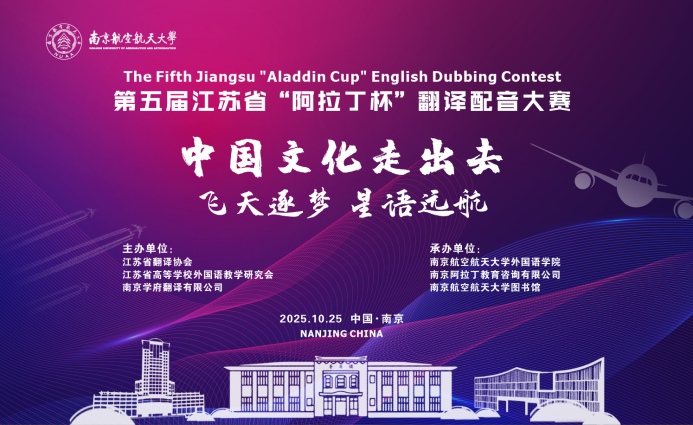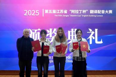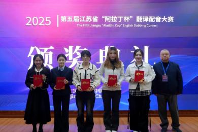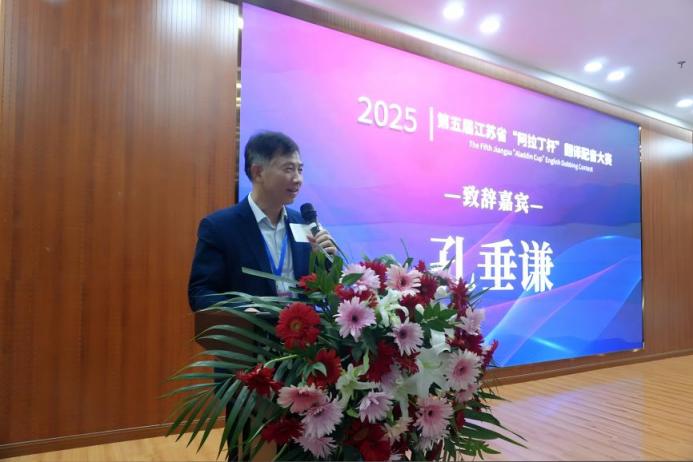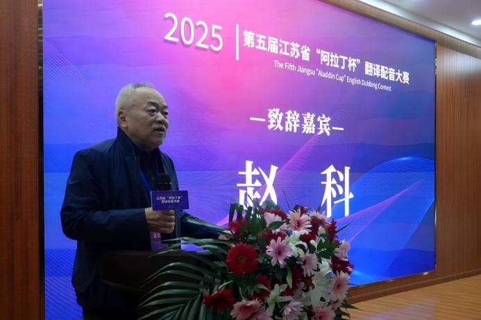 江苏省翻译协会会长刘成富在致辞中提及AI对翻译学科的挑战,认为“阿拉丁杯”翻译配音大赛是转化挑战的实践,呼吁江苏外语人用外语讲好中国故事、助力中国形象传播,秉持人类命运共同体理念与文明互鉴视野,扎实建设江苏外语学科,为中华民族伟大复兴交上满意答卷。