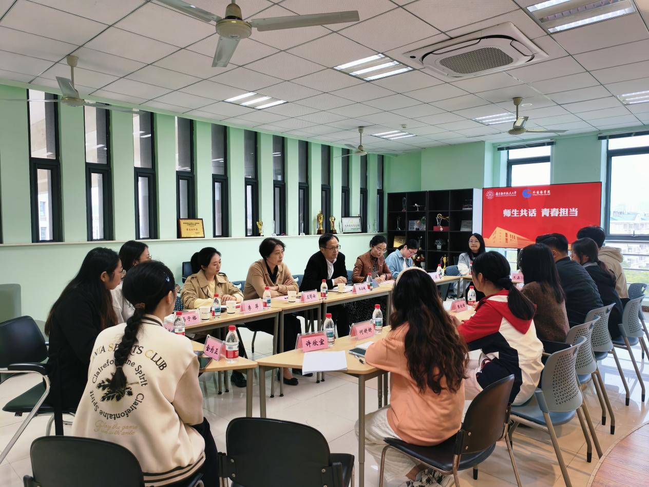 在最后的师生共话环节中,学生代表们围绕学校教育教学与个人成长发展自由发言。来自不同年级和专业的本科生及研究生结合自身学习与实践经历,就就业指导服务、跨学科课程设置、国际交流项目拓展、搭建校友交流桥梁等方面提出了具有针对性和建设性的建议。