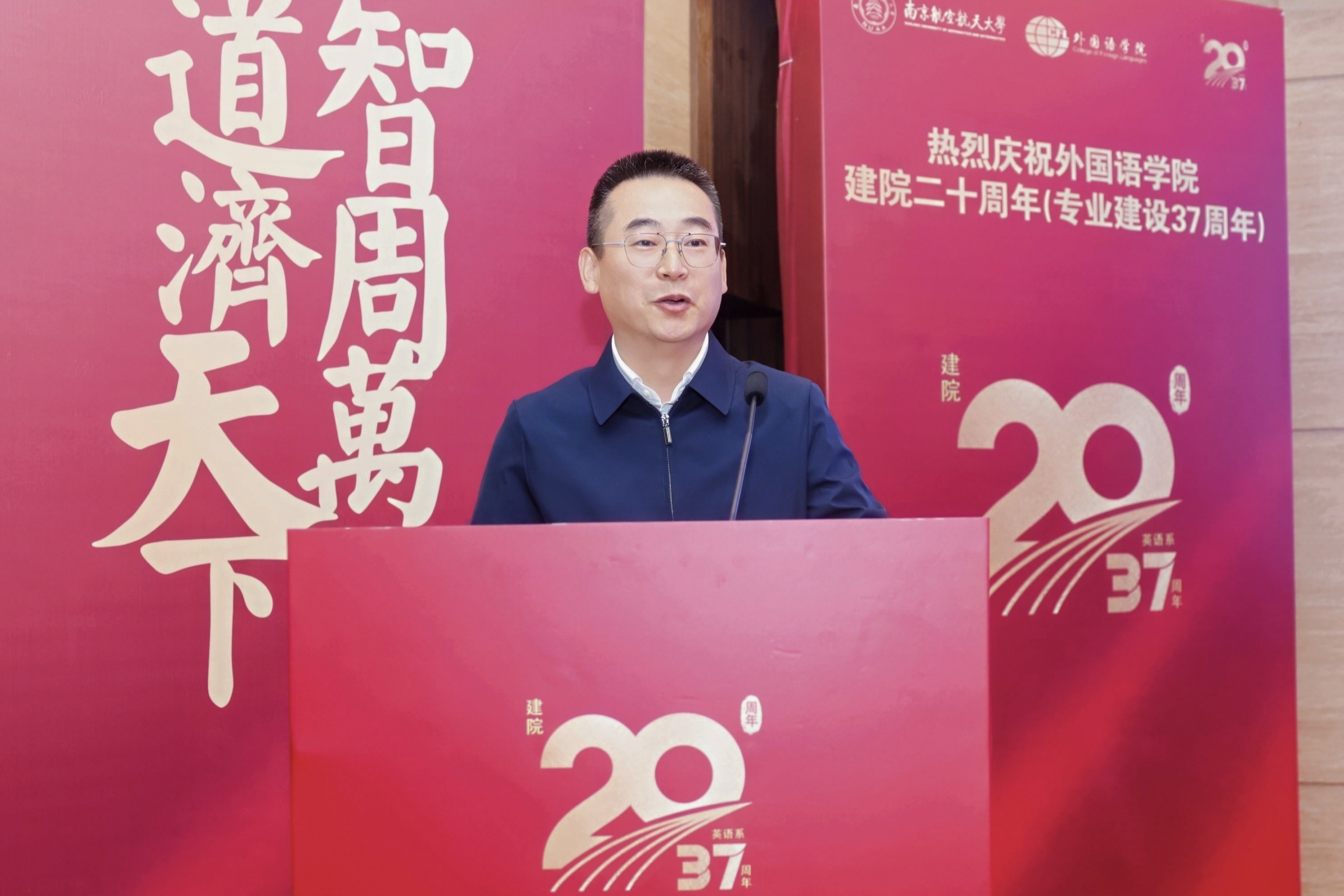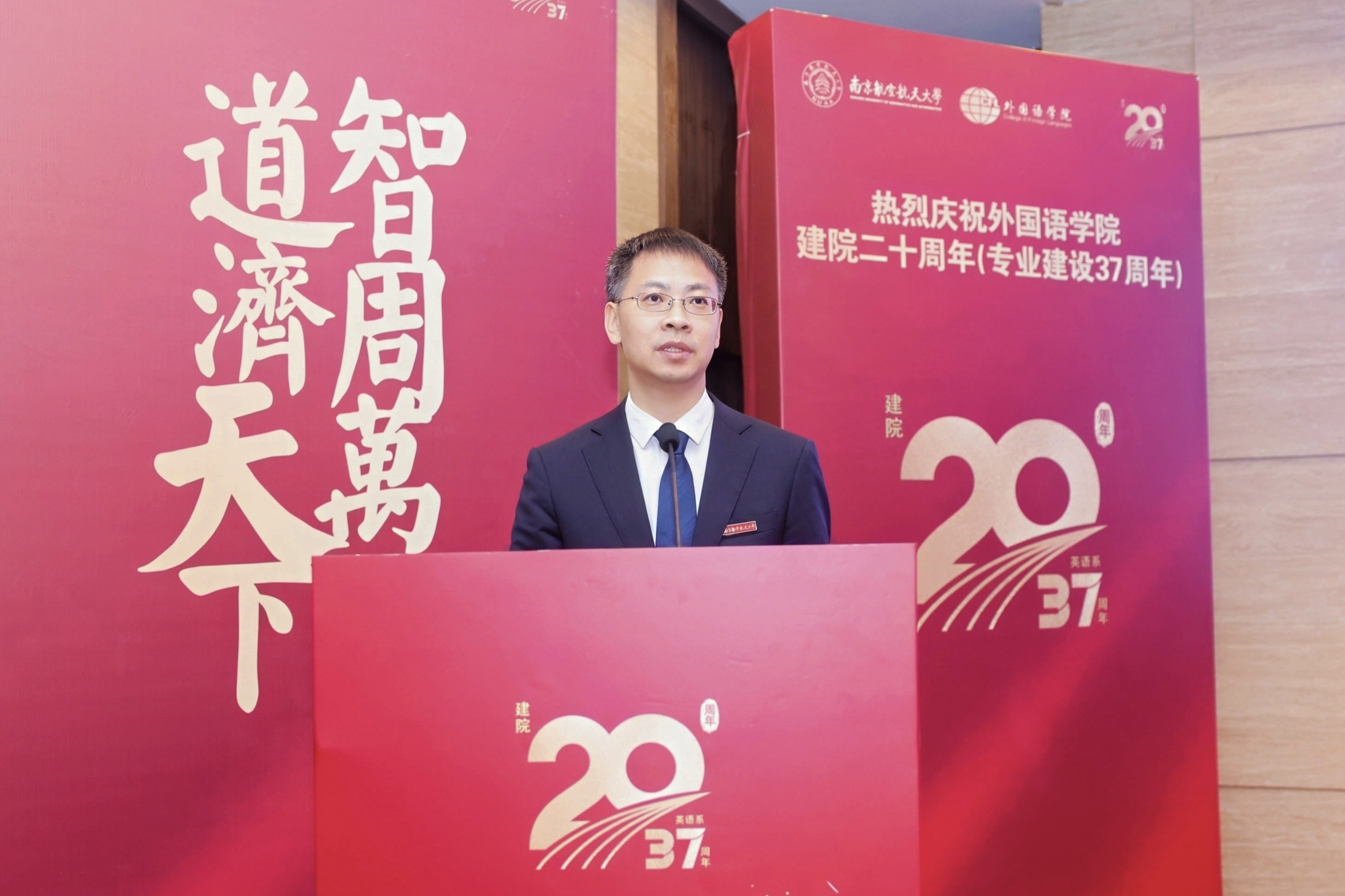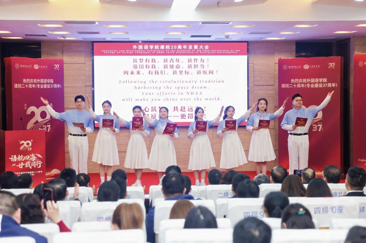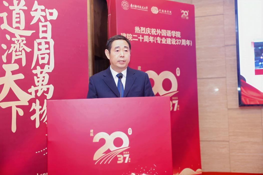 校长助理潘时龙在致辞中指出,学院植根南航沃土,从建校初期的公共外语教研室逐步发展至今,已经成为学校践行国际化战略的关键支点和人才培养体系的重要一环。展望未来,潘时龙提出三点期盼:一是坚守育人初心,强化“外语+”培养模式,培育能连通世界、服务行业的复合型人才;二是强化学科内涵,以“区域国别与国际传播研究院”为高地,深化与“三航”、低空优势学科的交叉融合,探索文理渗透的特色发展路径;三是勇担文化使命,将学术优势转化为传播能量,在推动中华文化走向世界、提升中国国际传播影响力中展现南航外语人的担当。