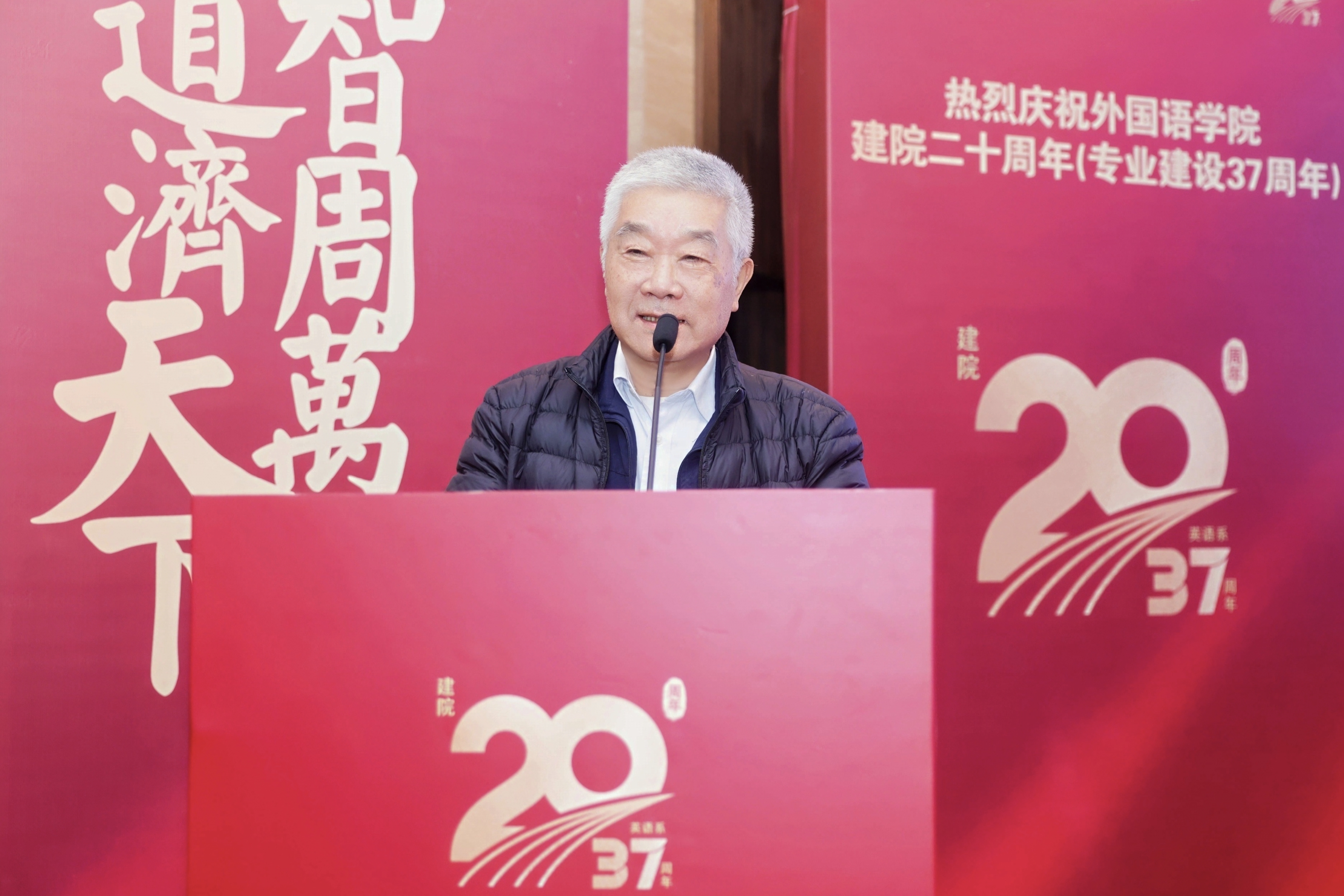 必威西汉姆联老领导代表吴鼎民教授作为学院发展的贡献者和见证者,回顾了学院二十载筚路蓝缕、薪火相传的办学历程,向所有为学院发展倾注心血的师生、校友表达了深切敬意与感谢,并鼓励全院师生创造新的辉煌,为学校的发展与国家的战略需求贡献外语智慧与力量。