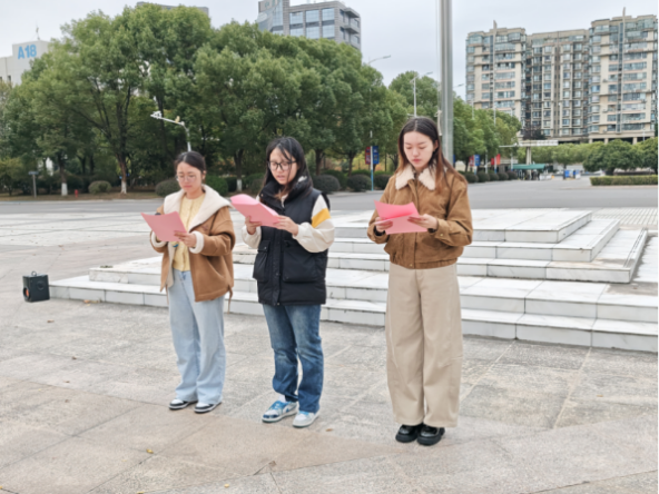 必威西汉姆联本科生联合党支部党员代表许欣宜、吴漪苇与廖海雲共同带来诗朗诵《奋进新征程》。朗诵以饱满的情感,将二十届四中全会描绘的宏伟蓝图娓娓道来,抒发了青年一代听党话、跟党走,矢志不渝投身民族复兴伟业的壮志豪情。