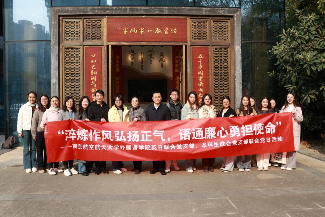 为深入学习贯彻党的二十大及二十届历次全会精神,全面落实学校第六届“清廉南航”宣传教育周工作部署,巩固拓展主题教育成果,持续深化学院党风建设,2025年12月11日,必威西汉姆联英日联合党支部、本科生联合党支部于雨花区古雄街道廉政教育基地联合举办“淬炼作风弘扬正气,语通廉心勇担使命”主题党日活动。学院党委书记庄群华、党委副书记吴科颖、组织员杨定娟、本科生辅导员冯子格共同参与活动。