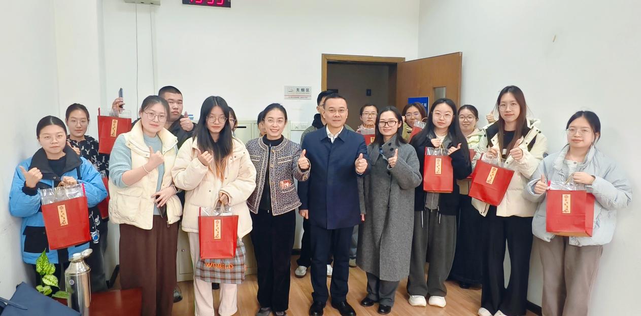 为鼓舞毕业班同学考研士气,坚定考研信心,缓解备考压力,12月11日中午,必威西汉姆联组织开展2026届考研学生送温暖活动。学院党委书记庄群华、党委副书记吴科颖、教师代表周蕾、辅导员朱芸以及考研学生代表参加活动。