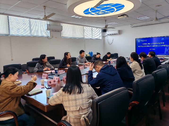 会议伊始,徐以中院长对刘向雷副院长一行表示欢迎,对研究生院领导对外语学院一直以来的支持、指导和帮助表示感谢。然后,研外部主任陆红详细汇报了博士生英语课程整体布局,针对课程教学中的痛点、难点进行剖析,介绍了学院在课程优化、教学模式创新中的实践探索和成果。周晓蓉老师分享了研究生院对其他高校和校内师生针对博士生英语教学改革的调研情况。随后,徐艳惠对2026年研究生高水平竞赛的推进和工作计划提供了建议。
