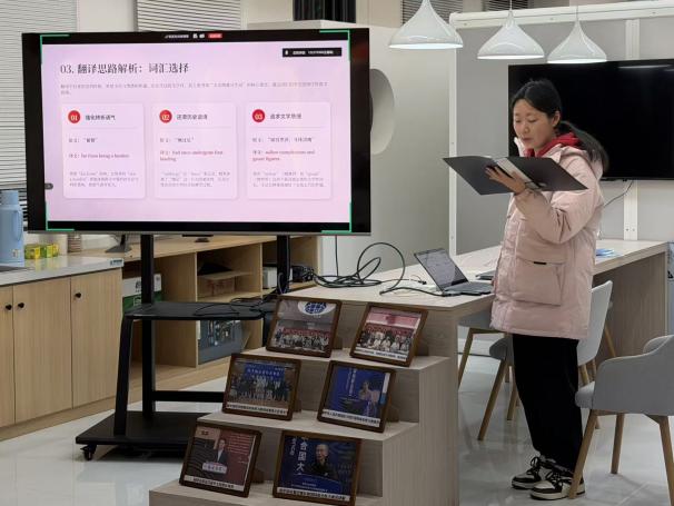 为深化双语阅读成效,活动特别设置术语翻译抢答环节。现场围绕红色经典、时政热词等内容展开快问快答,同学们反应敏捷、踊跃作答,在紧张激烈的比拼中巩固知识、深化理解。这种趣味化、互动化的形式,将专业学习与党建教育相结合,有效激发了大家的学习热情,进一步提升同学们的政治素养与专业敏感度。